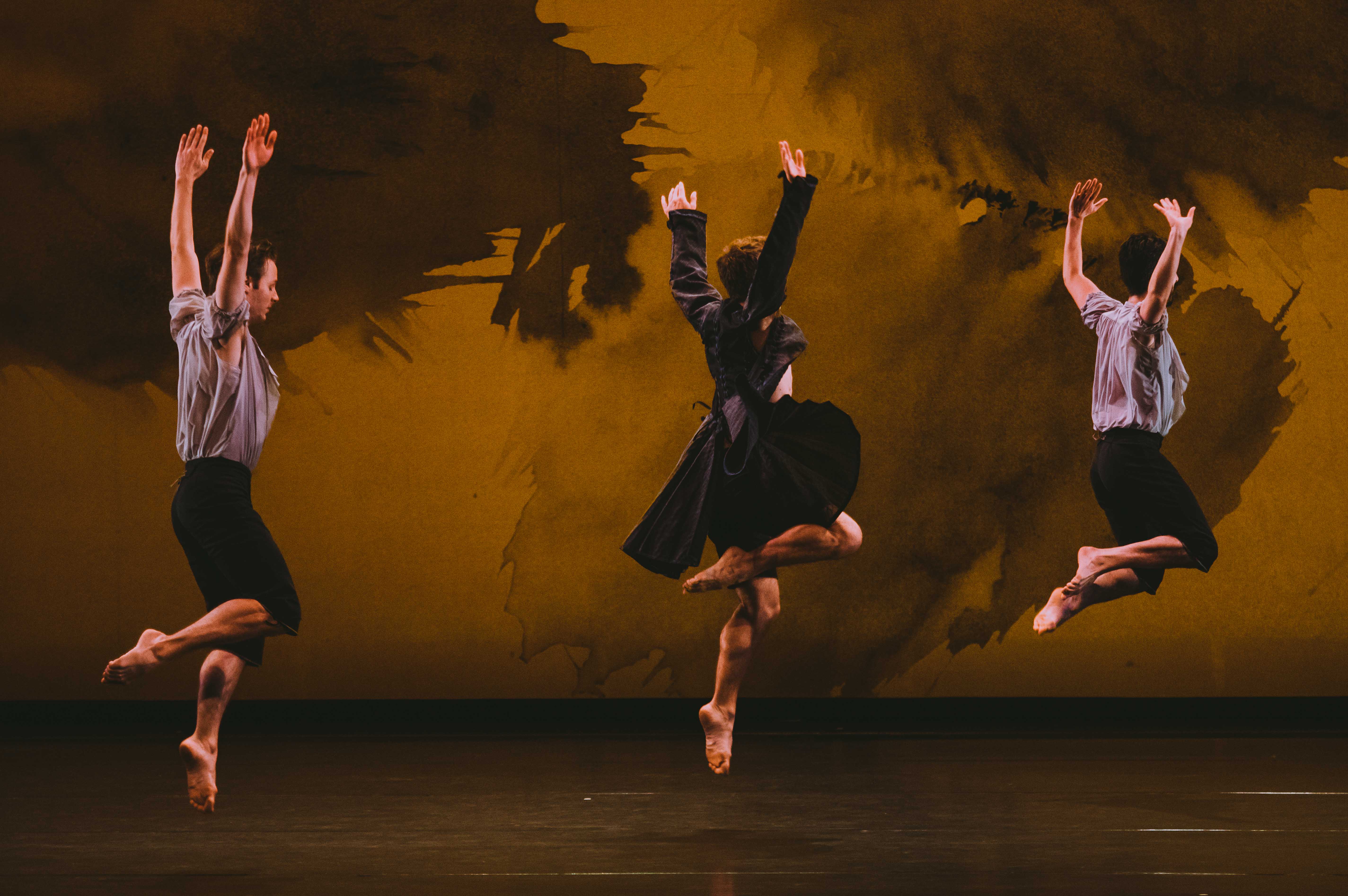 Morris seamlessly interweaves steps and shapes from folk, the court, ballet and ordinary life while building a series of motifs that are sprinkled throughout, often with a new or unexpected touch. In Eleven the women at one point gather In a group and look upwards as if there is something mesmerising out of our sight, but not theirs. The men will later have their version of it. The same happens with fingers that are pointed as if to say, “you need to pay extra attention right now”. Often dancers will throw themselves into a generous, wide-armed whirl that feels less like a choreographed move than a spontaneous outburst of ecstasy.