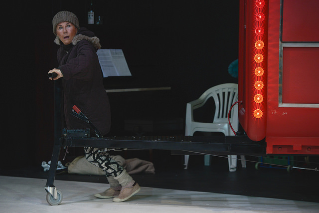 Mother Courage – the character – brilliantly embodies the kind of duality that’s constantly shifting. For every good quality she displays there is evidence of its opposite. She is funny and grim, brave and cowardly, generous and venal, protective of her children while failing to protect them, open to a spot of romance and hard as a nut, and on it goes. Is she really courageous or a vulture opportunistically picking at whatever bones come her way?