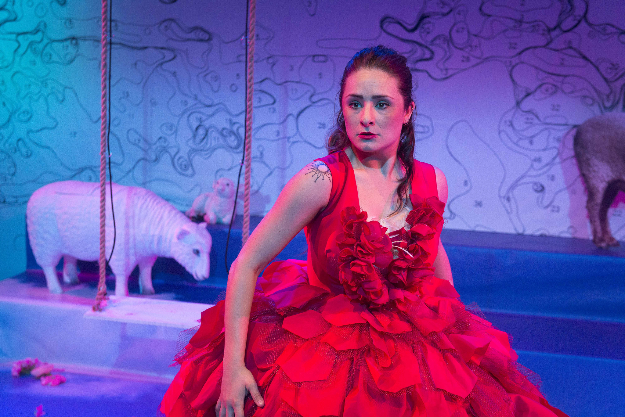 It’s wildly truncated and mostly lipsynched but the essence is there and it’s staged in a way that would cause no palpitations in, say, Germany, where regietheater (director’s theatre) reigns. Well, obviously it’s a hit-and-run version of the big thing, but it’s good. The countryside where Violetta and her lover Alfredo live is dotted with sheep, flower-entwined swings fall from the ceiling and Violetta’s gown is a cage. In Marg Horwell’s sets and costumes there are also jokey visual references to Lohengrin and Carmen. There’s quite a lot going on if you know your operas.