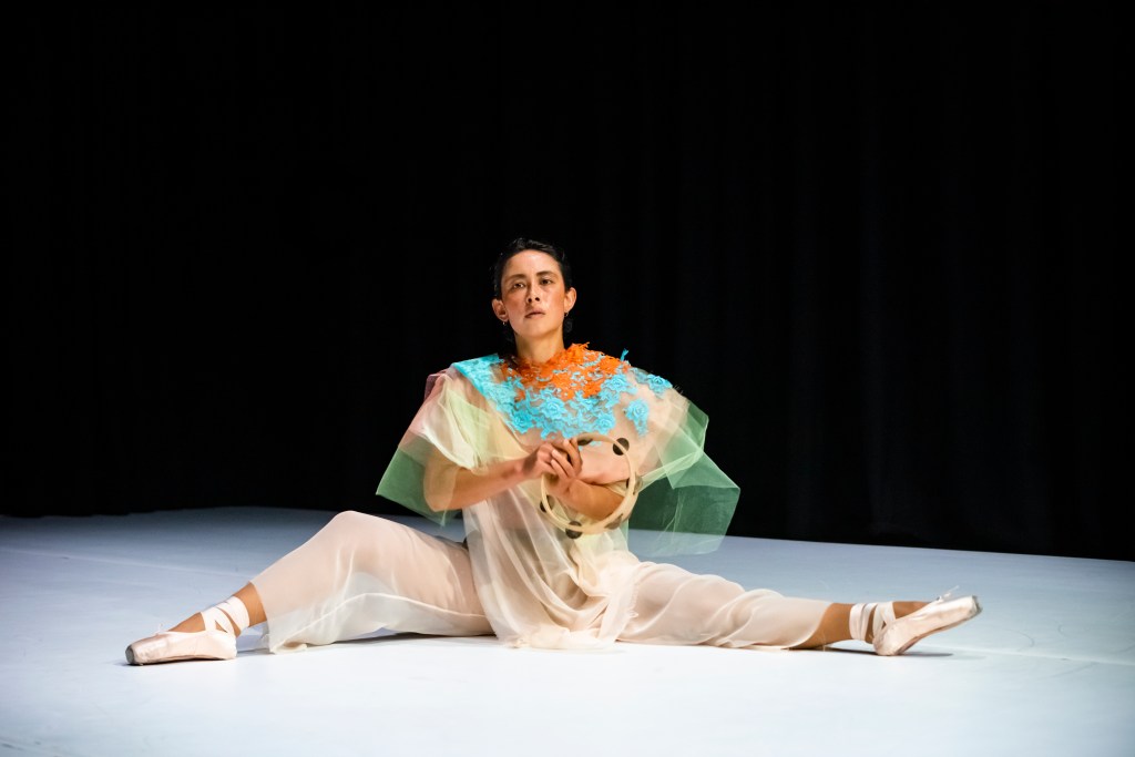 Lang’s CASTILLO, created in association with and in celebration of its performer, Jana Castillo, was equally elusive. It was in three sections, each preceded by a video roughly equal in length to the dance that followed. The opening video took a journey through the elaborate process of constructing a pointe shoe, mind-bogglingly complicated when you consider the short lifespan of the shoe. Then Castillo was seen in athletic gear and attacking form, giving traditional ballet steps loads of swagger and attitude. After a too-long video that lingered over close-ups of things found in nature, Castillo reappeared in looser garments. Wearing socks, she danced in a softer, more grounded style.