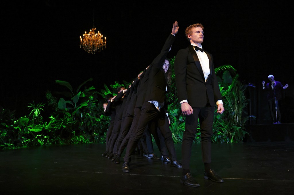 The curtains open on a lush riot of greenery in the background (Parker co-designed with horticultural consultant Penny Hunstead) and a fancy chandelier. The setting cleverly summons simultaneous thoughts of an up-market tropical resort and a jungle threatening to entangle all in its inexorable path. And there’s something that sounds like a ship’s horn in Dimchev’s score. So there’s opulence, mystery, danger and a whiff of hedonism.