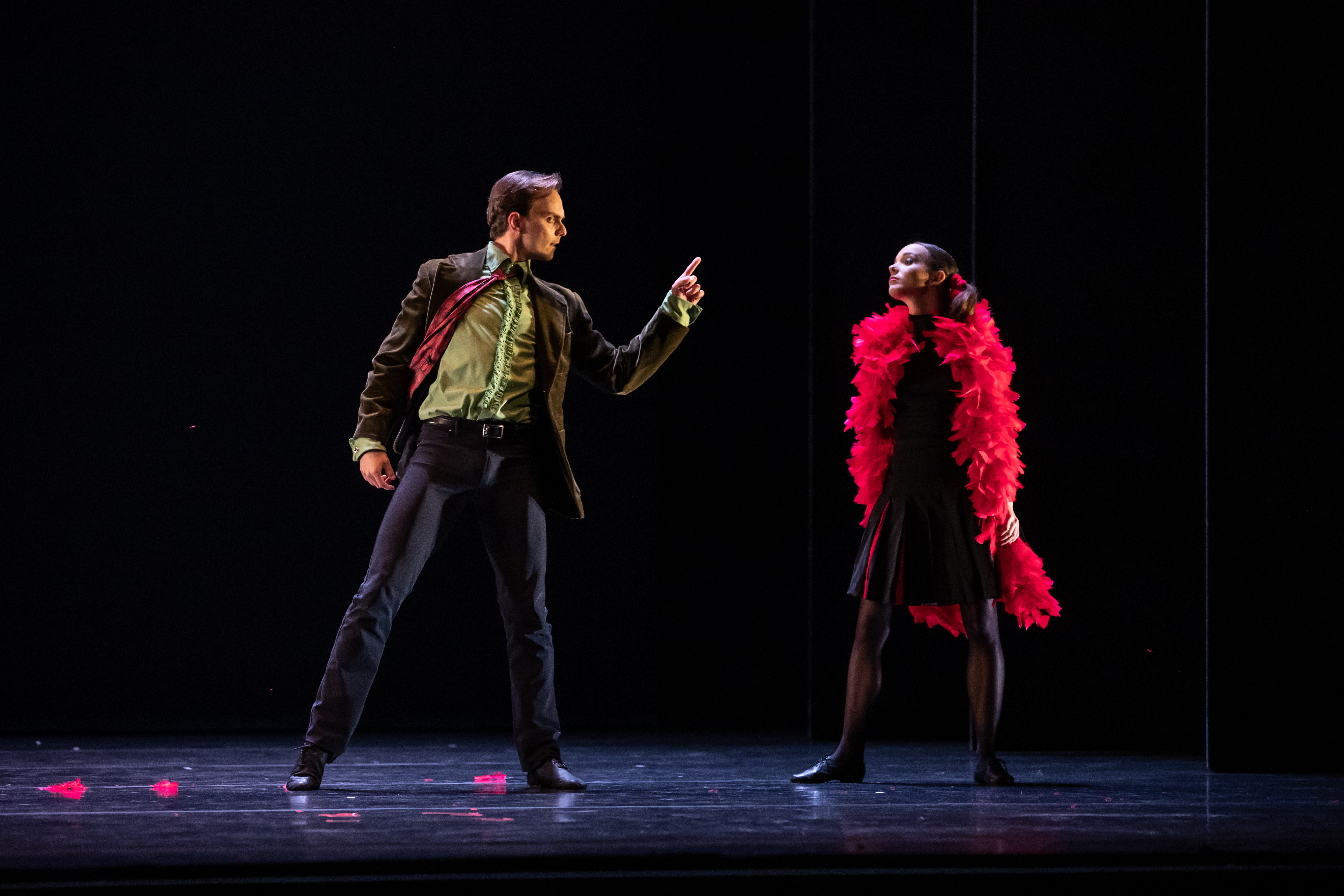 The muscular introspection of A Brief Nostalgia is followed by Christopher Bruce’s Rooster, a jeux d’esprit from 1991 to Rolling Stones songs. One could go into a deep discussion about show-offy men and knowing, amused women but really all you want from Rooster is to sit back and enjoy sexy dancing to fantastic music. The song list includes Paint It Black, Ruby Tuesday, As Tears Go By and Not Fade Away as well as Little Red Rooster. If one is being picky the QB men could have found an extra smidgeon of arrogance to sharpen their moves. The women were spot-on, especially Laura Toser. She was elevated relatively recently to the position of soloist and gives every indication of not stopping there. Toser looked to be having the hugest amount of fun with Victor Estévez in Play With Fire and thus so did we.