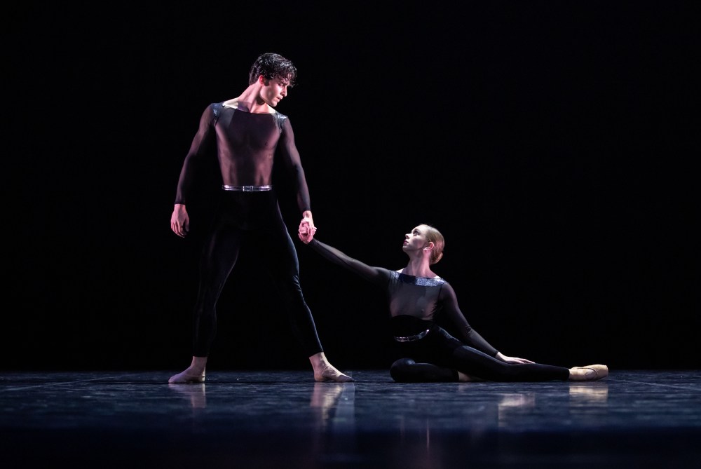 The fluid, fluent movement often had a contemporary flavour that warmed the neoclassical formality. Every now and again, for instance, dancers opened their arms wide and looked like birds preparing to fly. It was beautiful, slightly odd and evocative of freedom. (And possibly was a nod to the second section of Miroirs, which Wörtmeyer didn’t use, titled Oiseaux tristes, or sad birds.) At other times there was a more specific summoning of personal relationships. There was an outstanding and startlingly sensual pas de deux for Brooke Ray and Luca Armstrong, both company artists. (One of the best things about Bespoke is the chance to see dancers from the lower ranks of the company shine.) As the lead couple, principals artists Mia Heathcote and Victor Estévez were by turns playful, tender and composed. They were seen first in regal purple and then in sombre grey for their final pas de deux, danced after Wörtmeyer gave the audience what you would usually think of as a big finish.