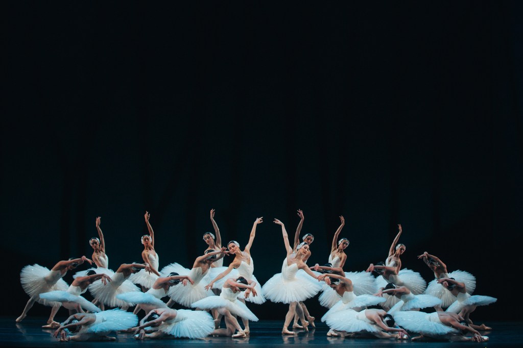 Supporting their queen, the large corps of swans was mesmerising in what might seem the paradoxical task of being a group of individuals acting in tight unison. The occasional loss of focus only brought into greater relief how splendid the women were.