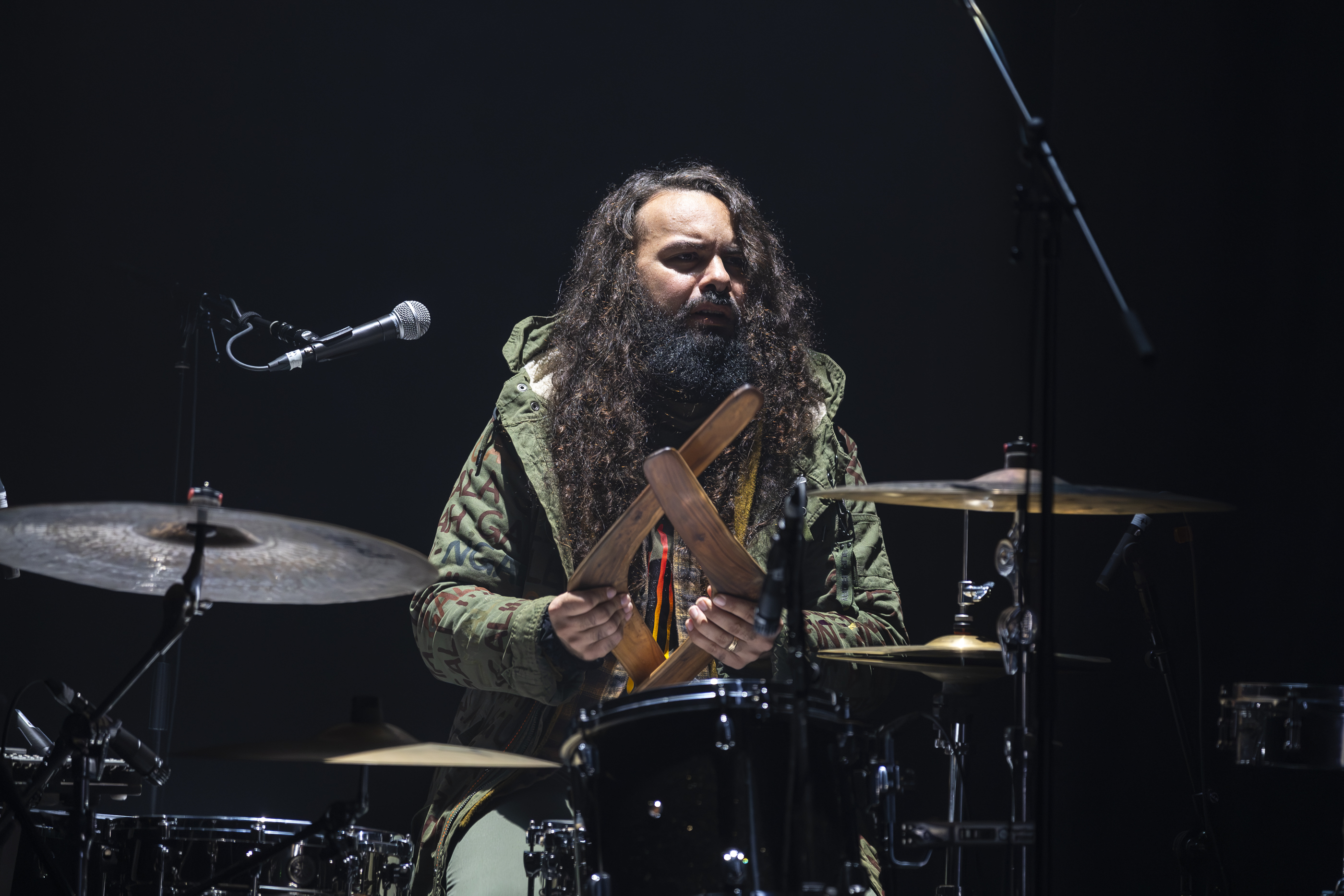 At the top of the show Jhindu-Pedro Lawrie ingratiatingly attempts to sell the audience a souvenir boomerang or two and then turns his hand to drumming, percussion and singing in a powerful reminder, if one were needed, of what live music brings to dance.