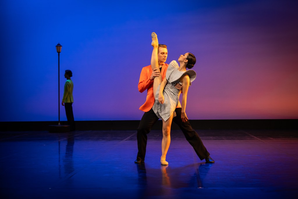 Birds of Paradise is made from the kind of body language used to attract a partner and extract a laugh. The dancers look sleek and dynamic (on opening night principal Patricio Revé in particular was given some high-octane moves) but the strictly male-female pairings give Birds of Paradise a somewhat old-fashioned air. Nevertheless, the work exists in the same crowd-pleasing universe as Christopher Bruce’s venerable Rooster (seen at QB only last year). It’s a lively change-of-pace piece that delights in men peacocking around to the strains of popular music and delights its viewers.