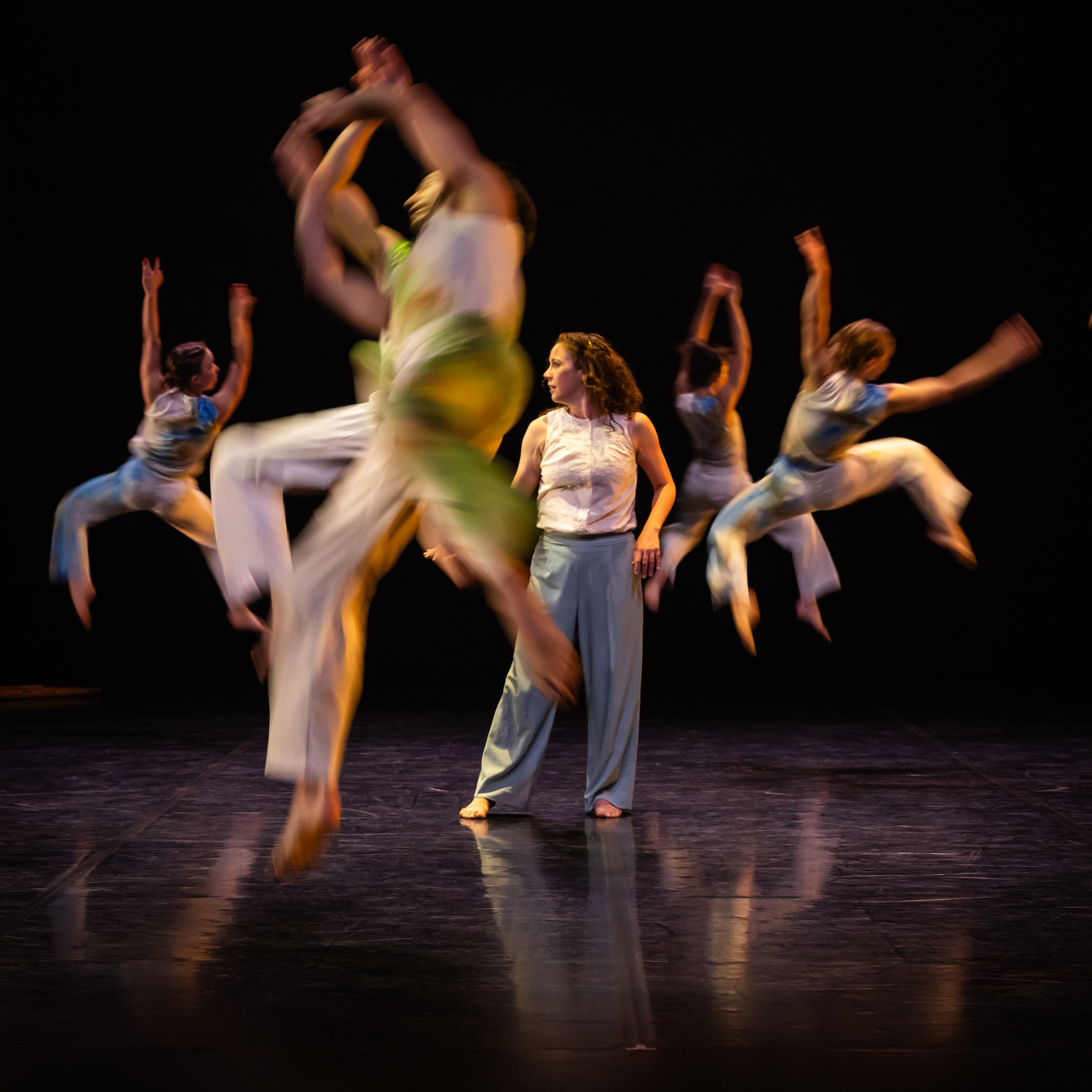 Touchingly, Williams, who composed the music with Seán O’Boyle, is Aunty Maureen’s grandson and Olsen brings the two together in a haunting image that reaches across time and space: Williams enters the dancers’ space to play his music directly to his forebear, here portrayed by guest artist Tara Robertson.