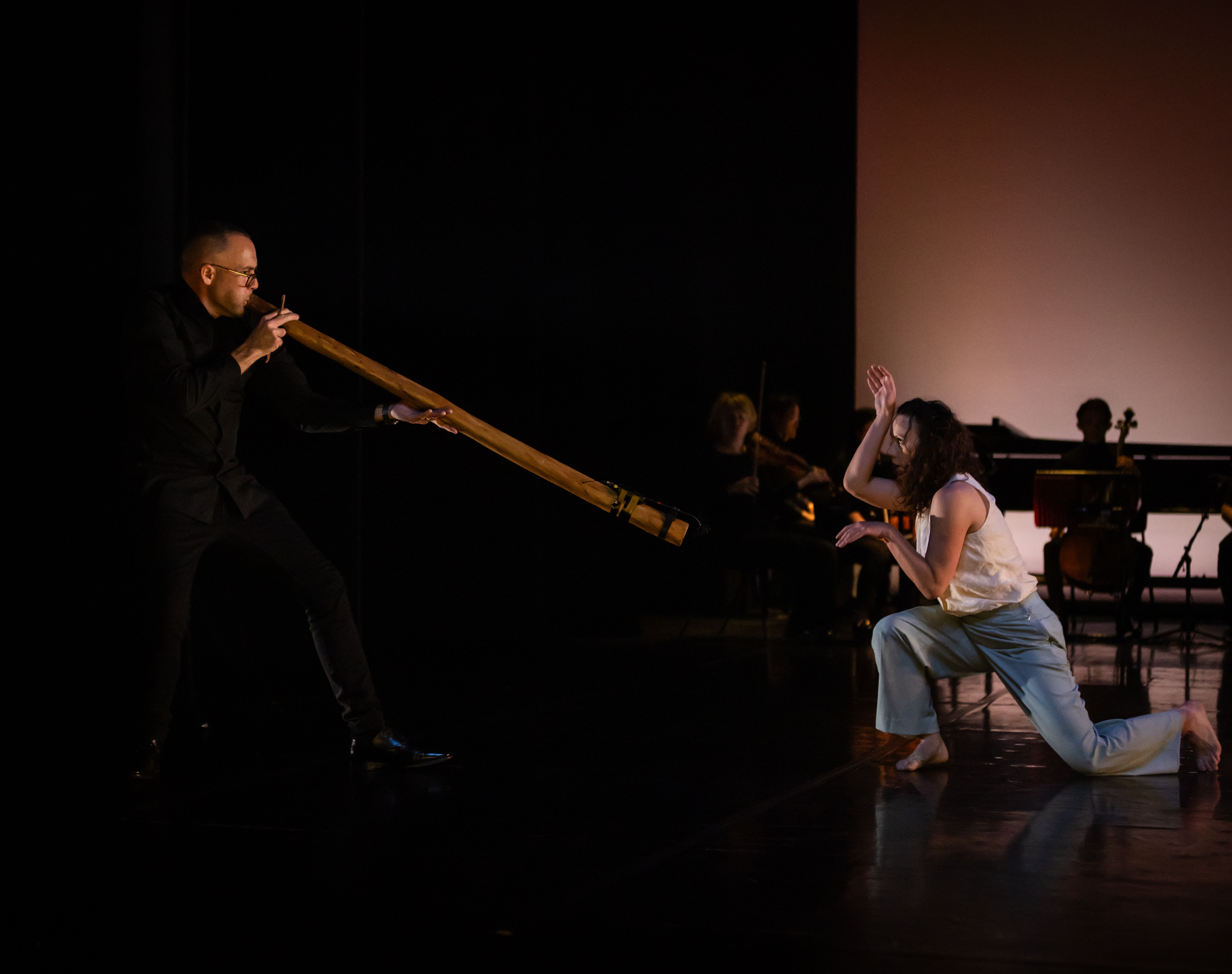 Two powerful decisions support the work. The first was that there’s a gorgeously textured new score, played onstage by Southern Cross Soloists and didgeridoo player Chris Williams. Let’s not underestimate the importance of this. Commissioned music and live performers represent a huge investment.