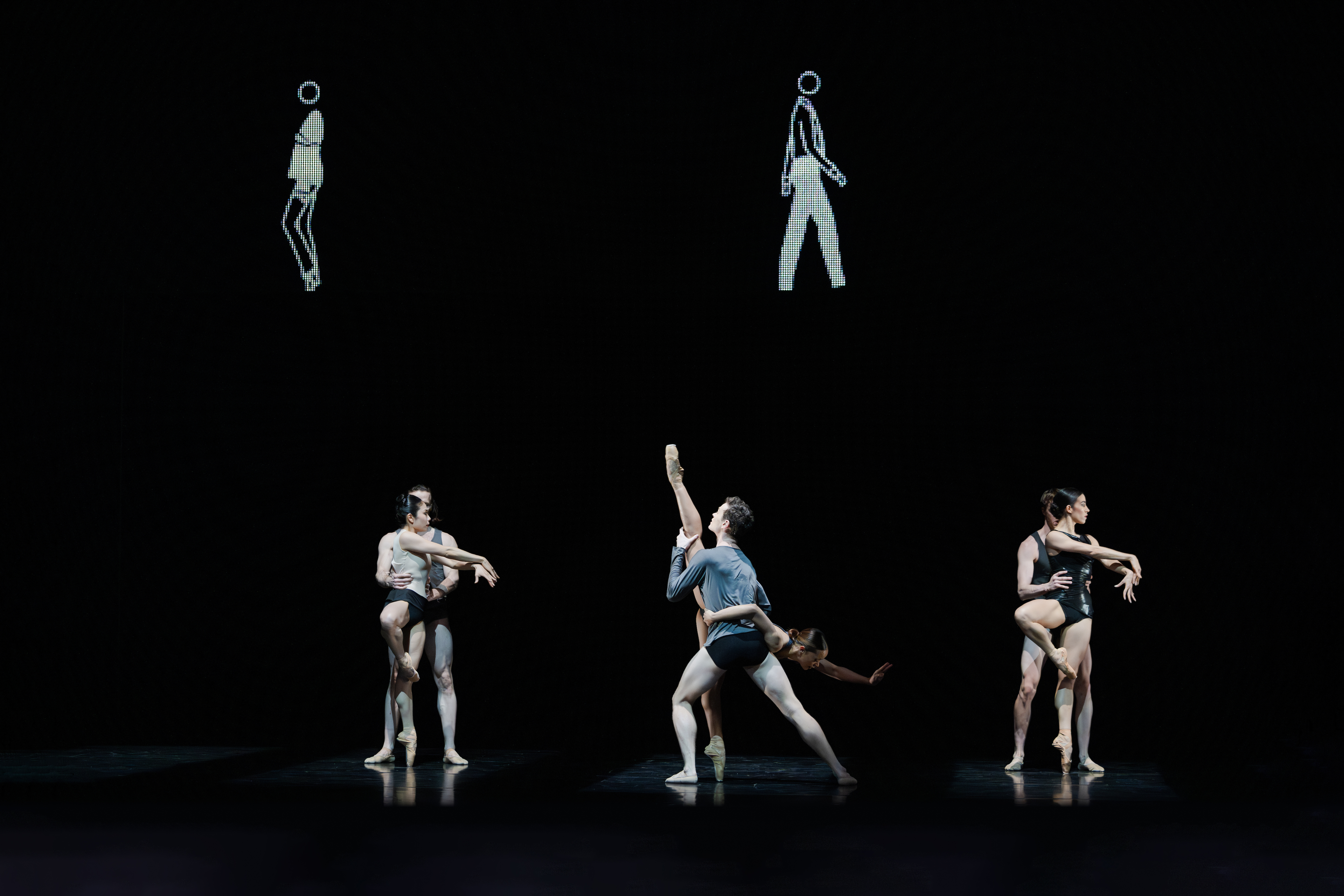 Underneath that sleek exterior is a work of deep emotions. A stream of LED figures strides above the stage (the work of artist Julian Opie) as below flesh-and-blood women and men seek purpose and meaning in themselves and each other. McGregor’s stretched and distorted classical lines make the dancers paradoxically powerful and vulnerable at the same time. The upright containment of ballet is turned into a kind of strictly controlled abandon – another paradox.