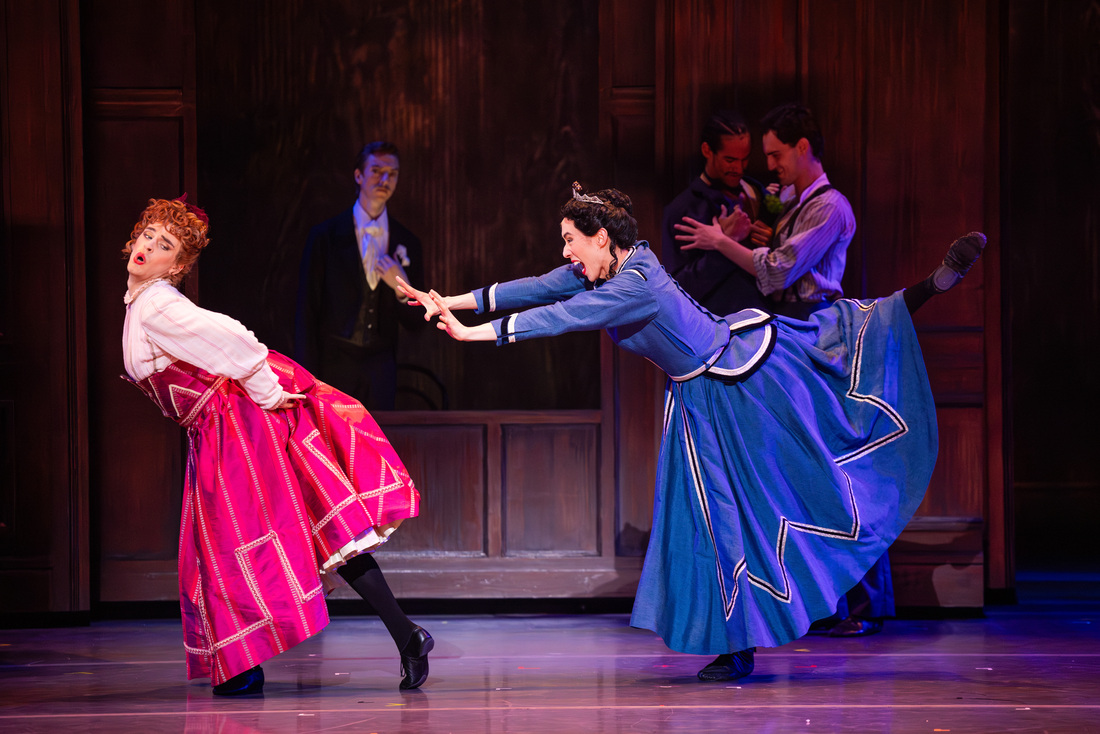 Oscar is then introduced to hijinks in low dives, where Talbot lets loose with boozy brass and rousing music-hall tunes and Wheeldon with gloriously scenery-chewing dance. Fatefully, Oscar falls under the spell of the unworthy Douglas, or Bosie as he was known (Benjamin Garrett in Melbourne, Adam Elmes in Sydney). The downward spiral begins.