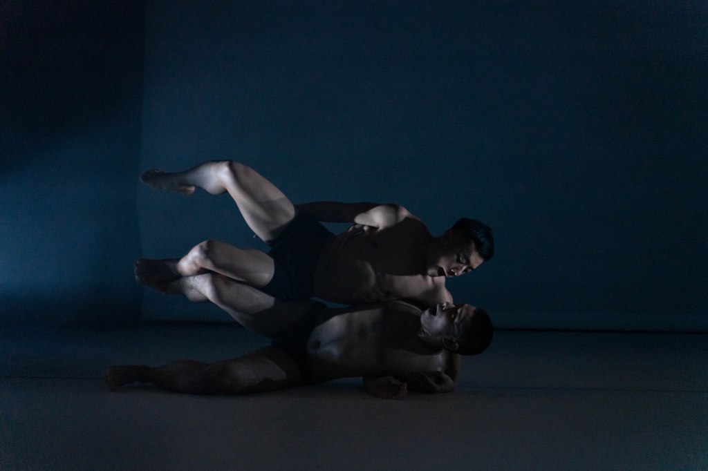 A stunning change of atmosphere brought a trance-like duo that conjured dark places of addiction. The dancers’ barely visible busy thumbs told that story. The intermingling of bodies that followed was extraordinarily beautiful and extremely disturbing in its implication of loss of self. In another context it might have been a true meeting of minds and bodies but not here.