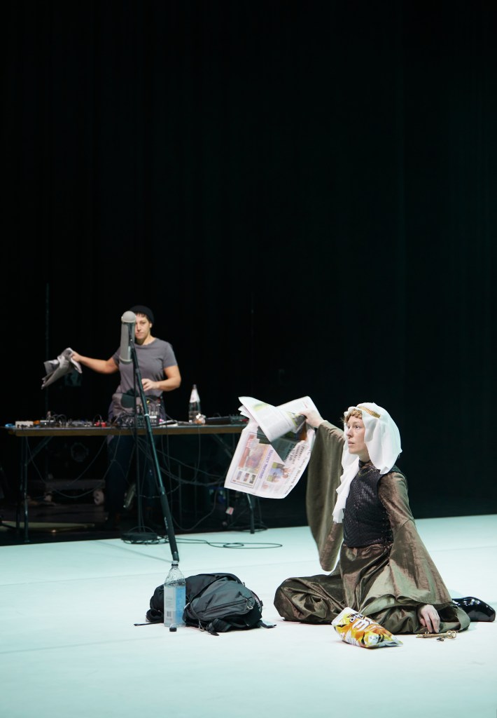 Performed in an empty, black-curtained space, FM Air existed entirely in the realm of atmospherics and the mysteries of behaviour. Take Wisby’s costume, for instance, which was kind of medieval-baby doll in appearance for some reason. The fact that it looked fabulous and gave Wisby an aura of fragility and innocence was probably enough.