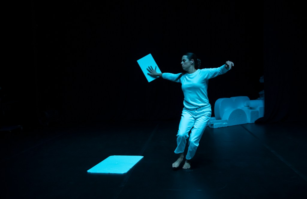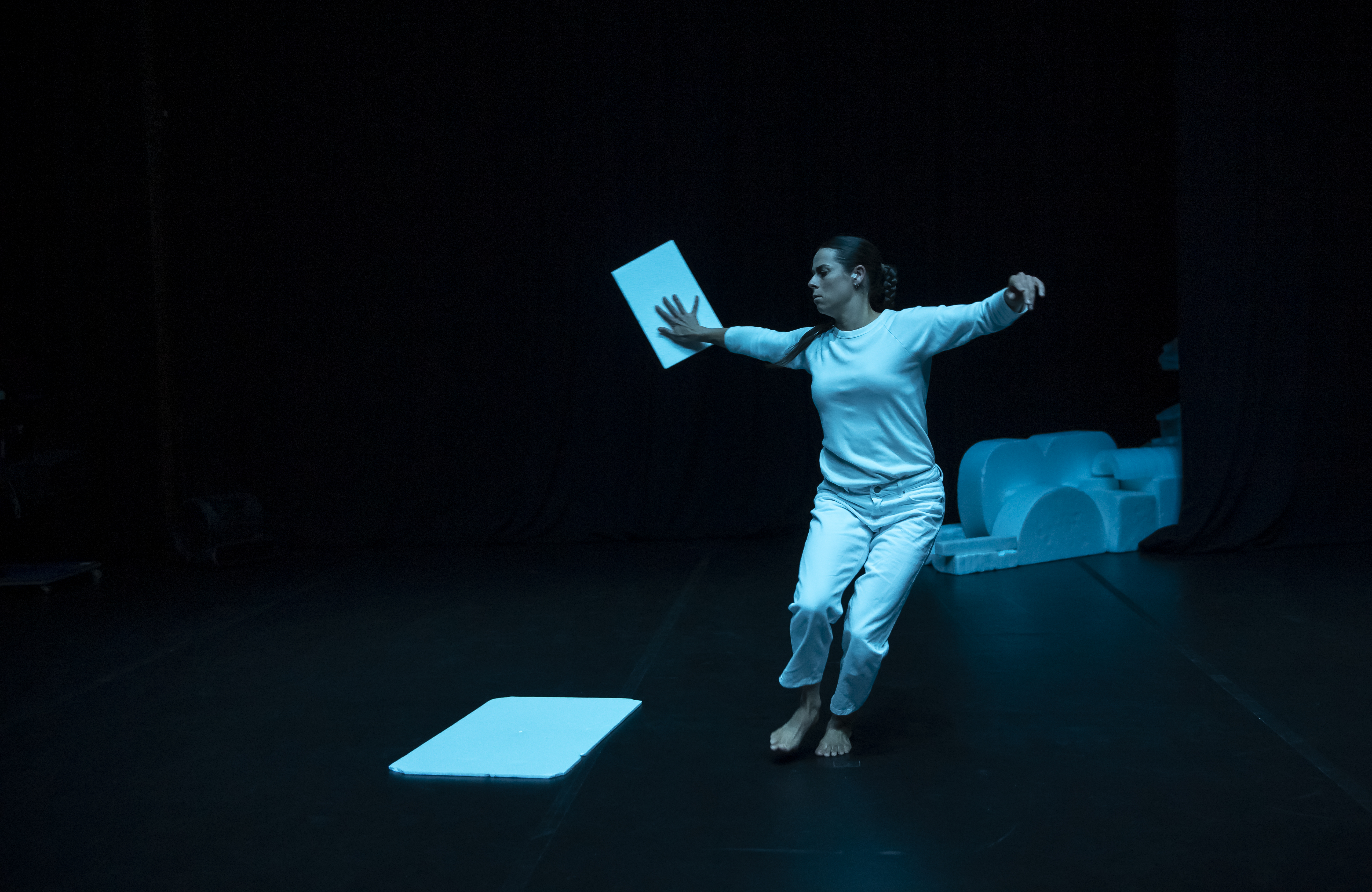 Alison Currie and Alisdair Macindoe’s Progress Report starts and finishes promisingly with imagery of the attraction of and then the disaster that is polystyrene. In between was a text-heavy and sadly turgid monologue on what the havoc wrought by plastics. The opening scene had performer Rachel Coulson delicately manipulating thin layers and increasingly large blocks of Styrofoam with the help of a large fan. We could see shape, weight and structure at work. Dance things. But we could also see it was Styrofoam, something togive pause for thought.