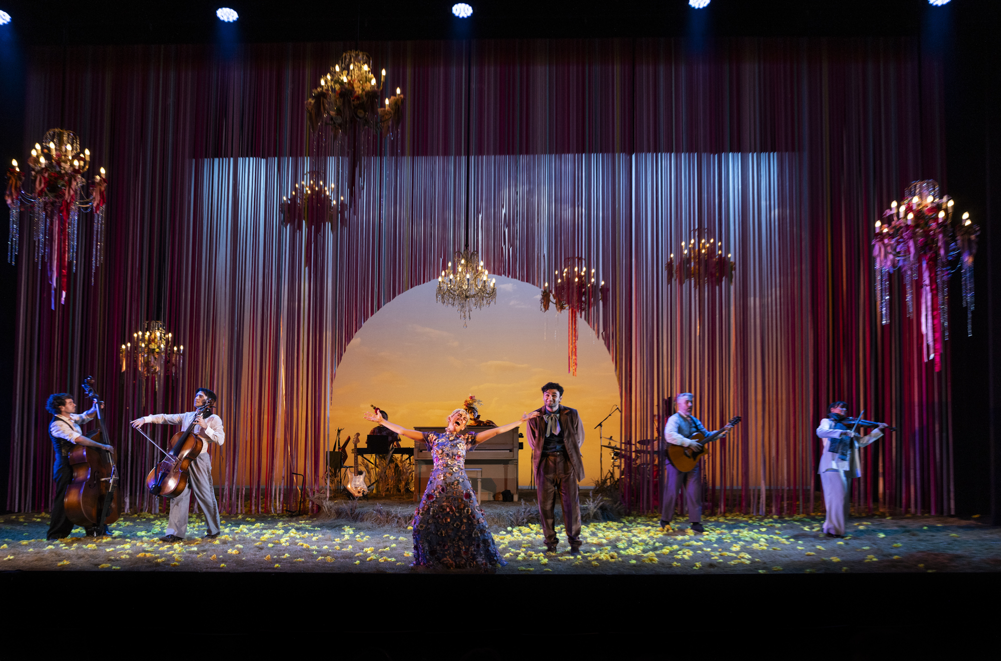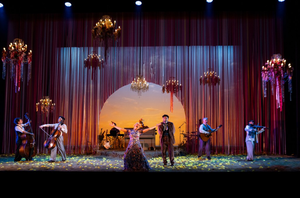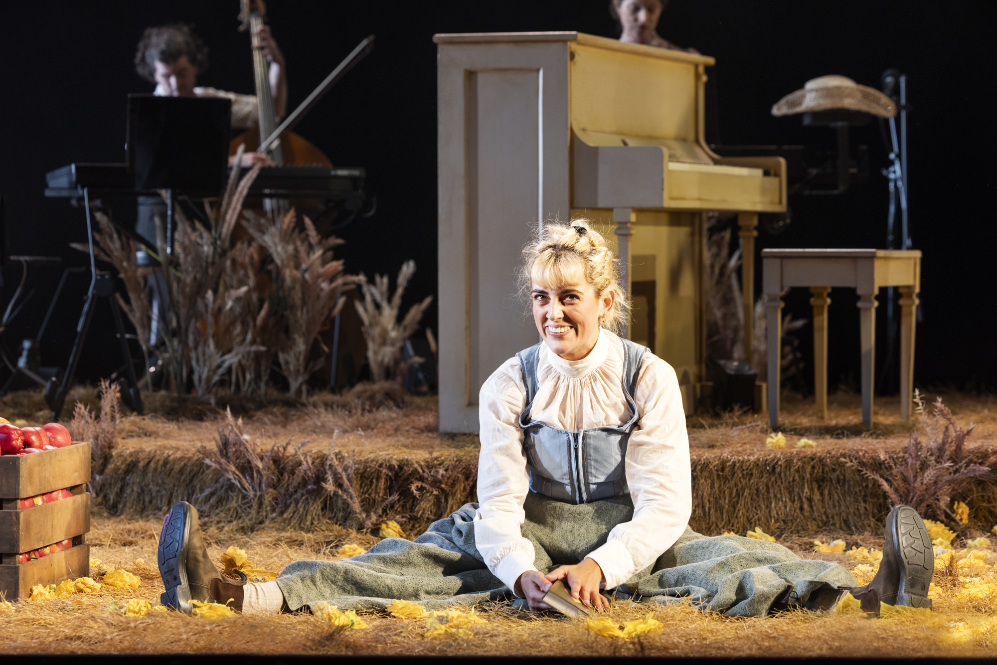 All the actors play instruments and are pretty much always on stage. Most play a couple of characters, sliding freely between well-doubled roles and ensemble parts. A warm sense of comradeship envelops the stage and flows to the audience.