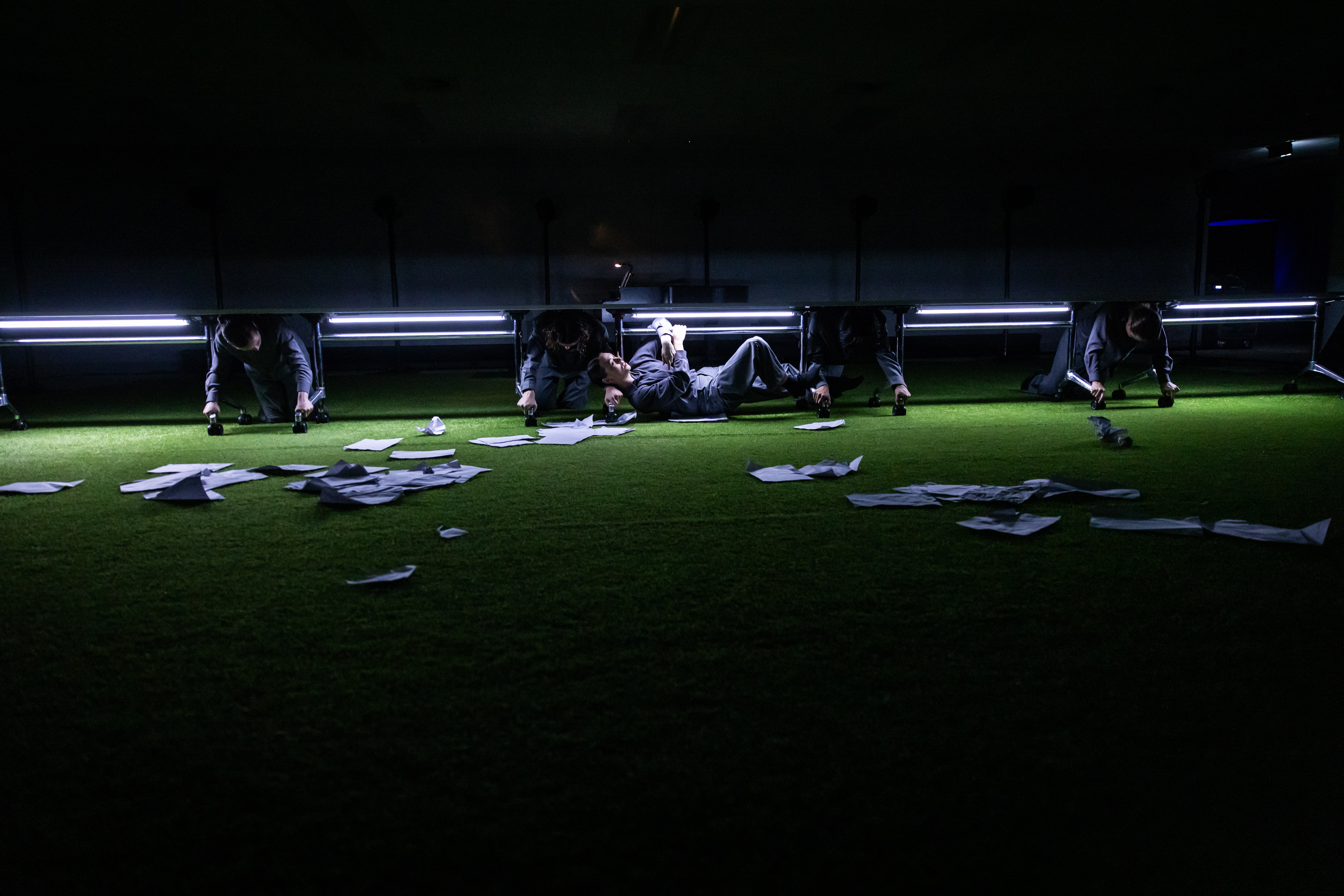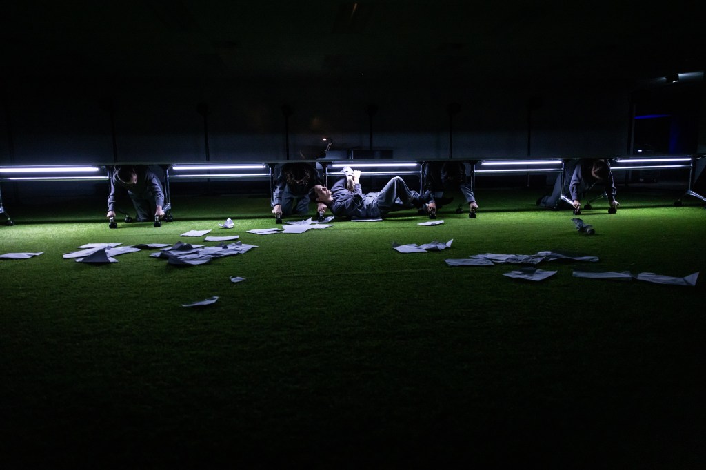 If not for the smart suits worn by the Code of Conduct dancers you could easily imagine this as a prison rec room. It’s that bleak.
